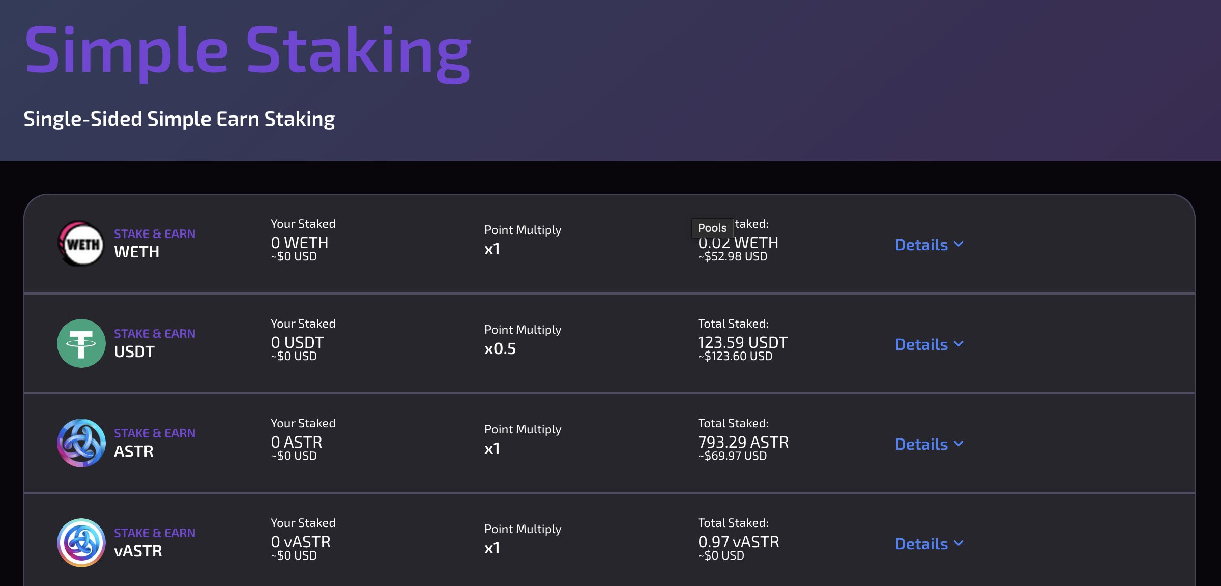 Very Long Swapのシンプルステーキングが実装されました。特定のトークンをステーキングすることで、VLSポイントをゲットできます。貯まったポイントは $VLS エアドロップ時の査定対象になるそうです。